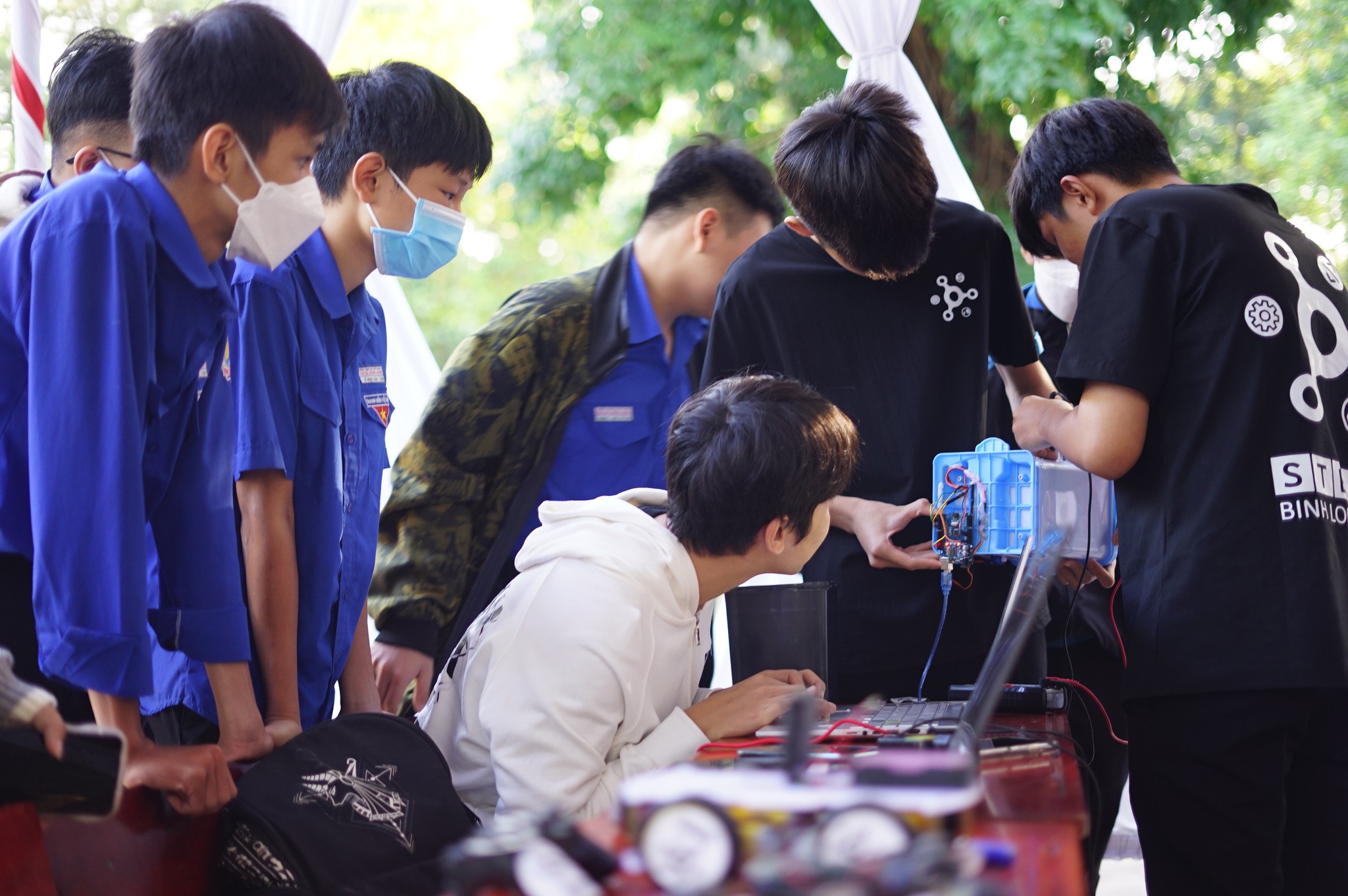 Hoạt động ngoại khóa “Bùng nổ cùng STEAM”, “Không gian sáng tạo trẻ”, “Kỹ sư trẻ / coder tương lai” được tổ chức song song với ngày hội cắm trại xuân trường THPT thị xã Bình Long.